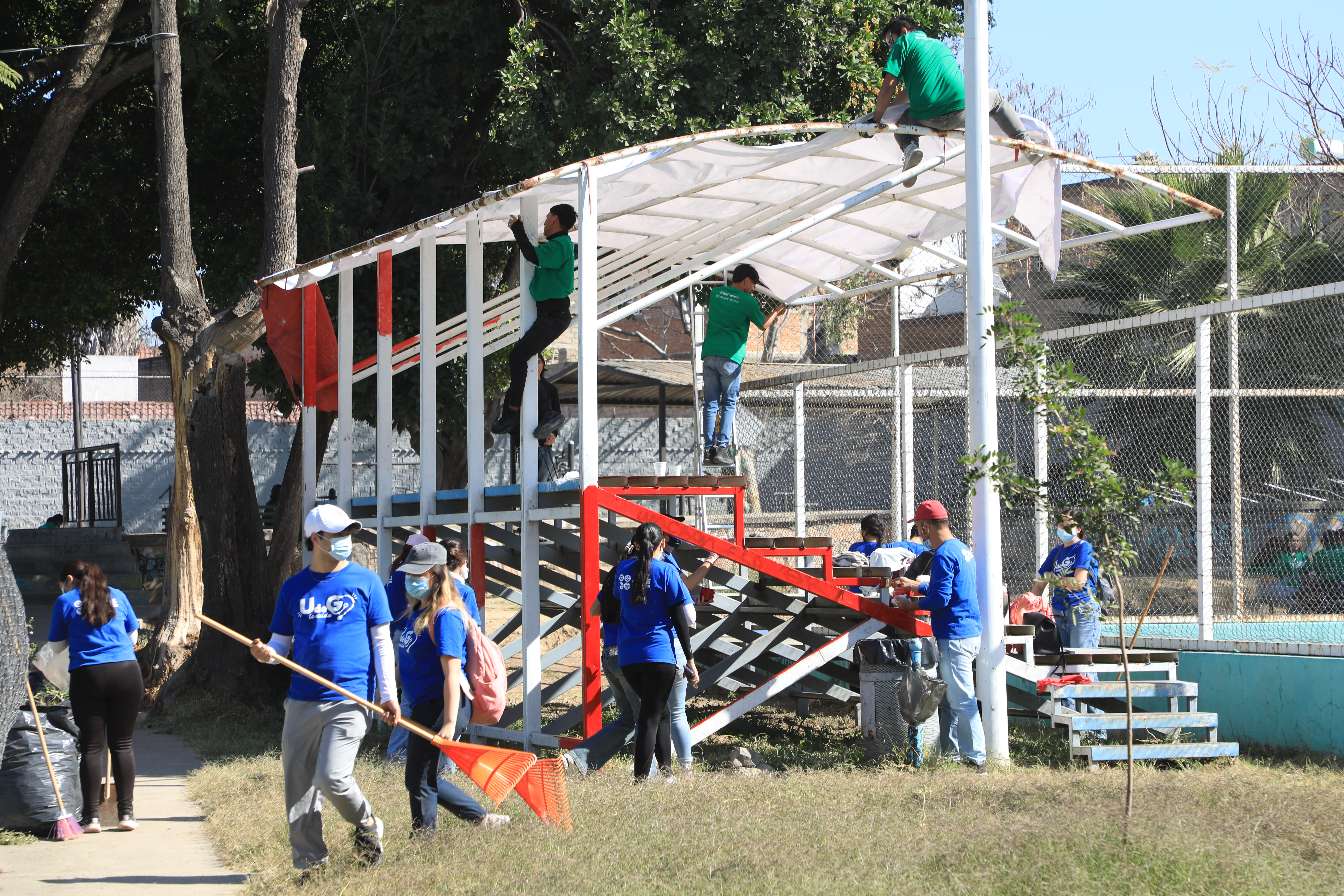 Este jueves se llevó a cabo en la Unidad Deportiva 41 de Oblatos una jornada de trabajo comunitario en espacios deportivos, como parte de las actividades previas al arranque oficial nacional de la Jornada Nacional de Tequios, impulsada por el Gobierno de México a través del Instituto Mexicano de la Juventud (Imjuve) y la Secretaría de Educación Pública (SEP).