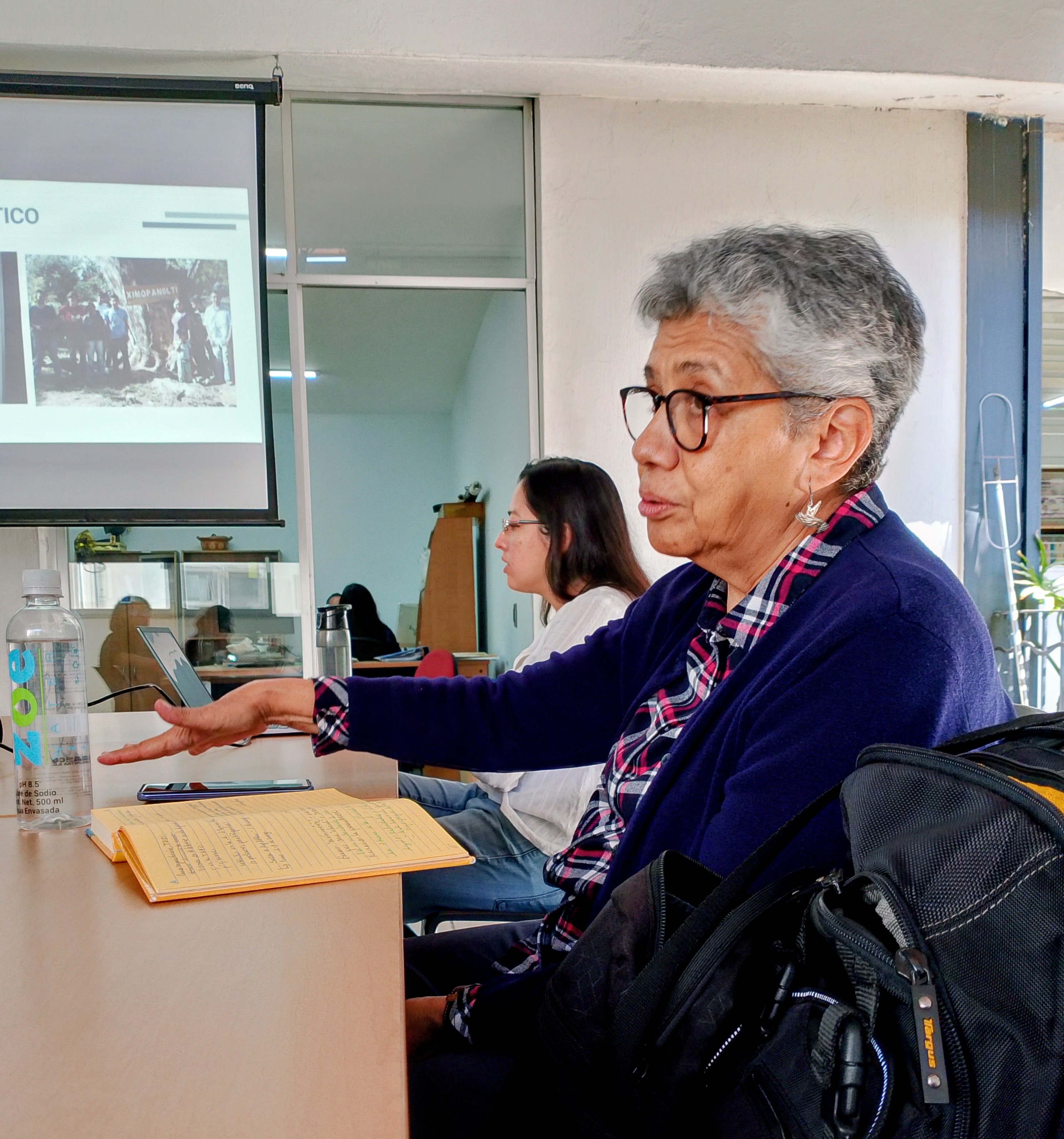 La Dra. Yáñez explicó que este plan tiene sus antecedentes en un diagnóstico realizado en la Sierra de Manantlán, donde colaboró con estudiantes de la Maestría en Lingüística Aplicada, autoridades tradicionales y docentes bilingües de Ayotitlán.
